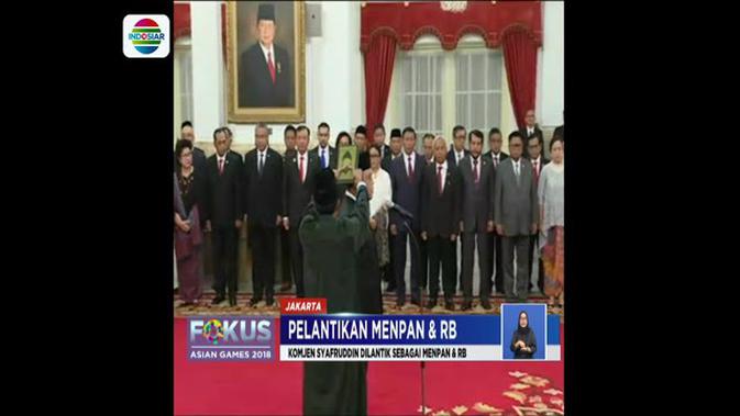 Fokus, Jakarta - Presiden Joko Widodo atau Jokowi melantik Komjen Pol Syafruddin sebagai Menteri Pendayagunaan Aparatur Negara dan Reformasi Birokrasi (Menpan-RB) menggantikan Asman Abnur yang mengundurkan diri.