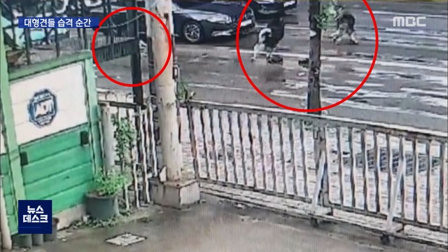 잠시 뒤, 차선을 가로질러 나타난 경차가 대형견들을 쫓은 뒤에야 공격은 멈췄습니다.