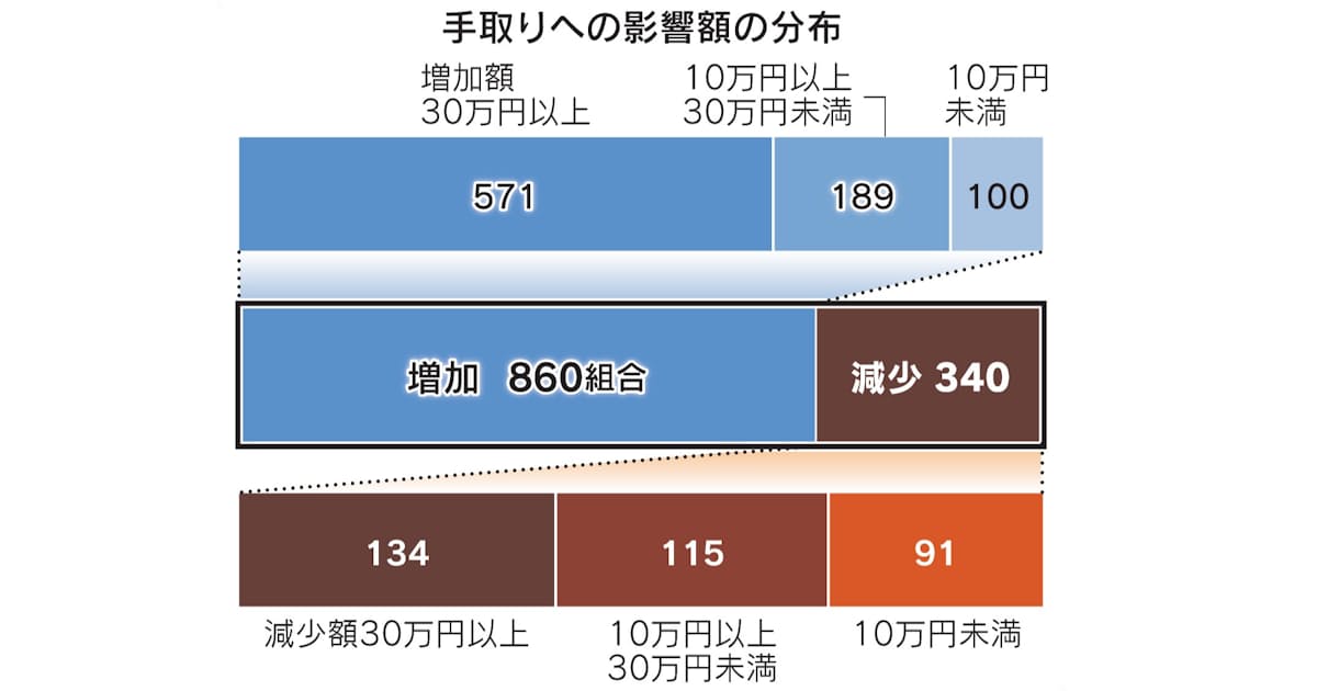 1人あたりの平均年収が減り、保険料が増えたのは全体の24%にあたる284組合だった。手取りが30万円以上減る影響が出たのは11%...