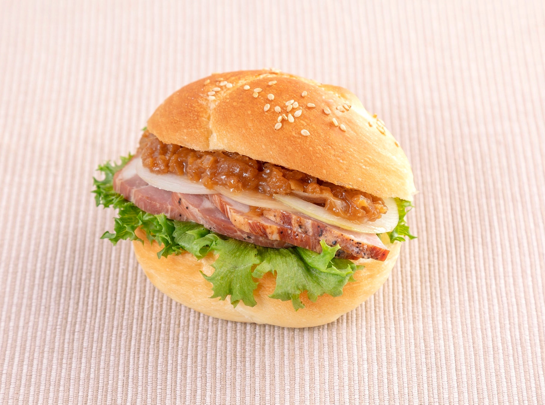 食べ応えのあるローストポークに肉料理によく合う玉ねぎベースのソースを合わせ、ふわふわのバンズでサンドしたボリューム満点バーガー!